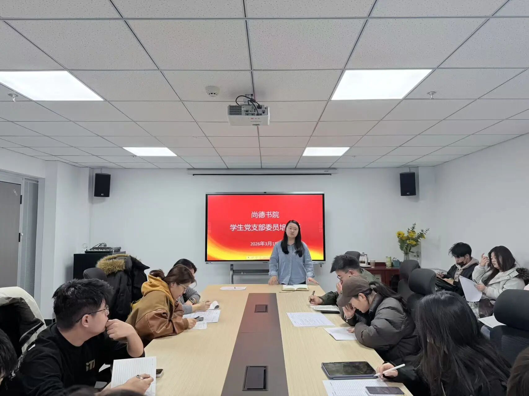 为进一步加强学生基层党组织建设,提升学生党支部委员的素质能力和业务水平。3月18日下午,尚德书院学生党支部委员培训班于书院203会议室开班。书院党委书记、院长潘瑞出席,党建思政中心负责人钱佳乐主讲,书院30余名支部委员参加培训。