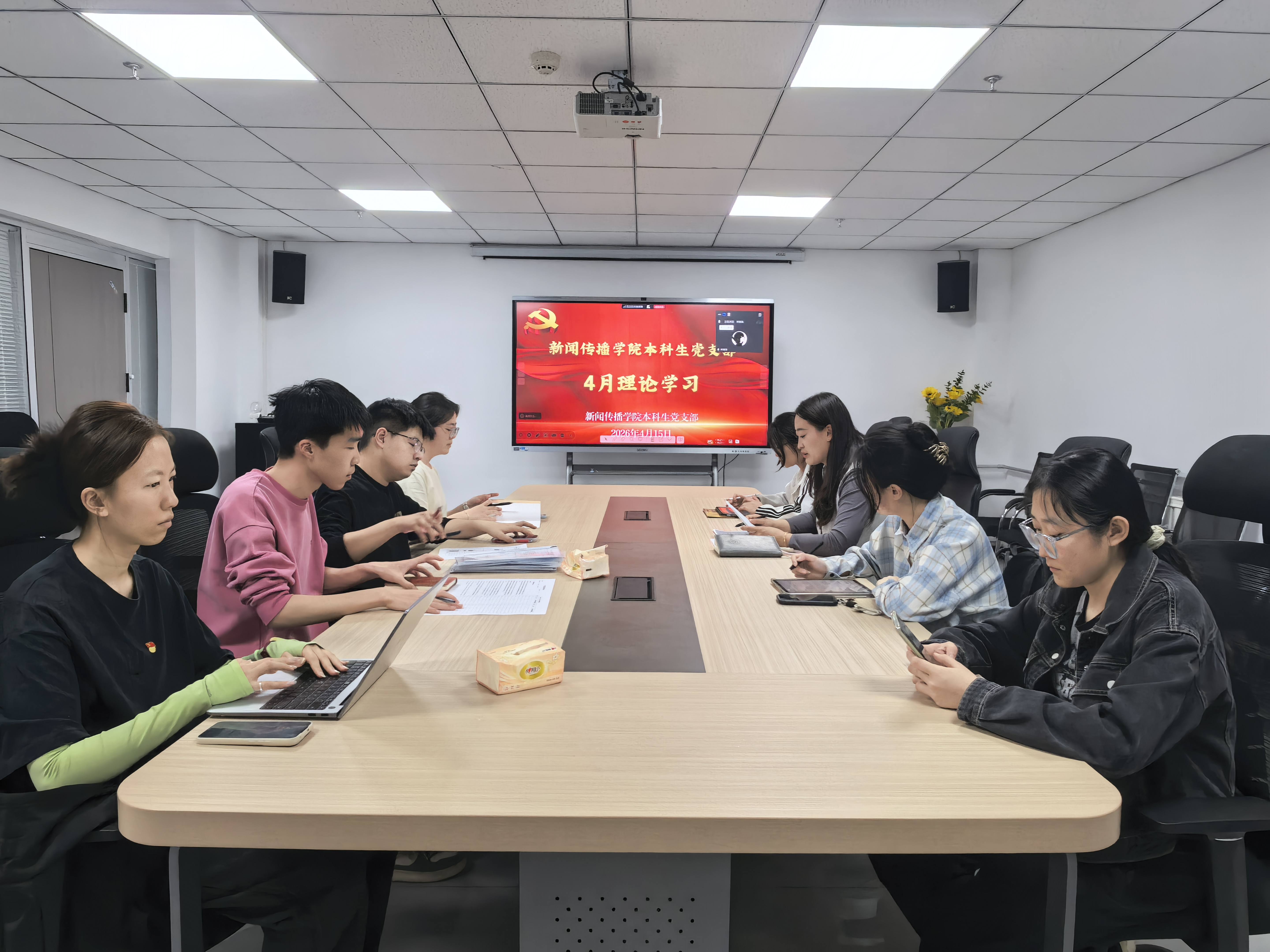 4月15日下午,新闻传播本科生党支部在尚德书院会议室开展主题党日活动。支部书记王亚莉主持会议,全体党员通过线上线下相结合的方式参与学习与研讨。
