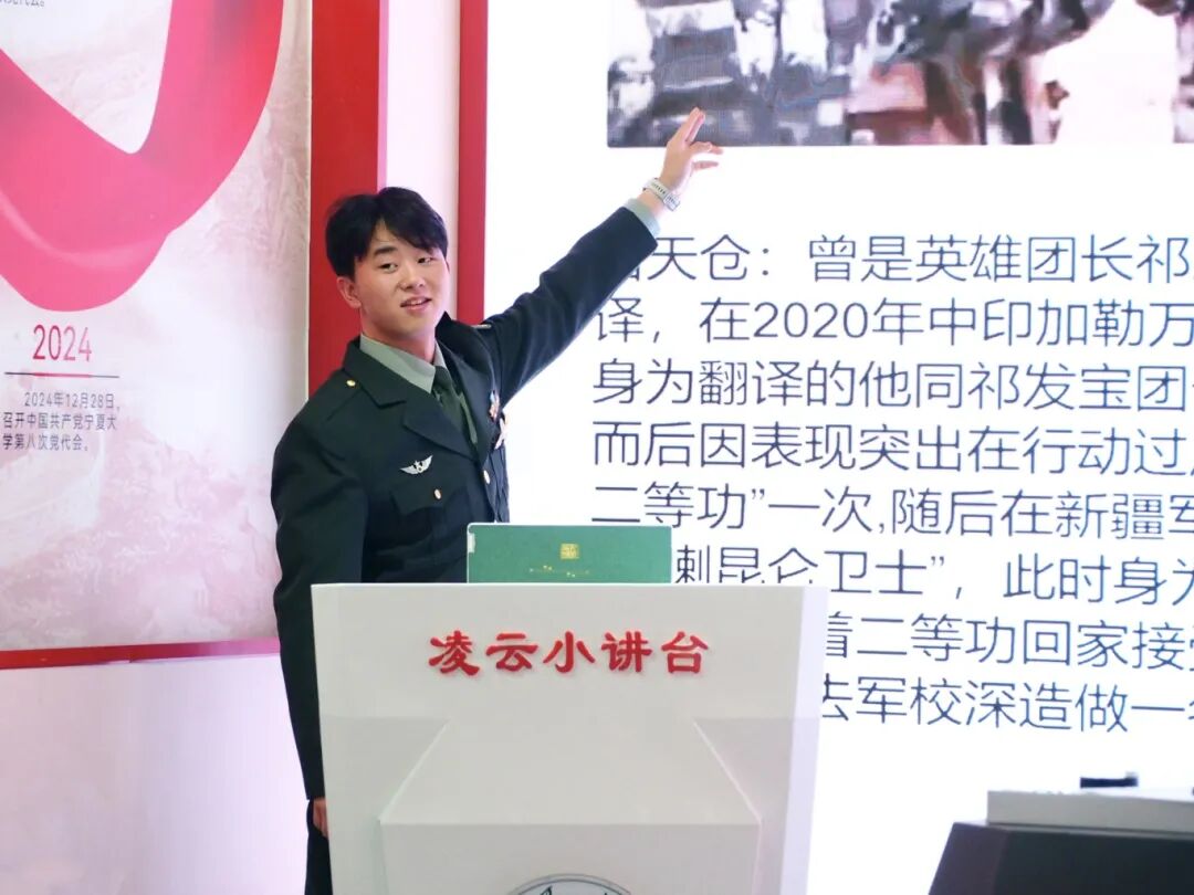 为充分发挥退役大学生士兵的榜样引领作用,学习军人风采,传承红色基因,1013日晚,马克思主义基本原理研究生党支部在宁夏大学智慧党建中心举办聆听军旅故事,传承红色基因党员先锋学堂活动。马克思主义基本原理研究生党支部组织委员沙绍鼎主持活动。
