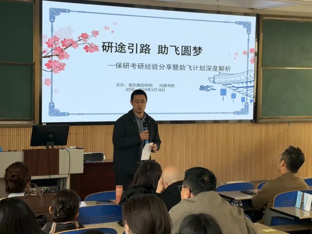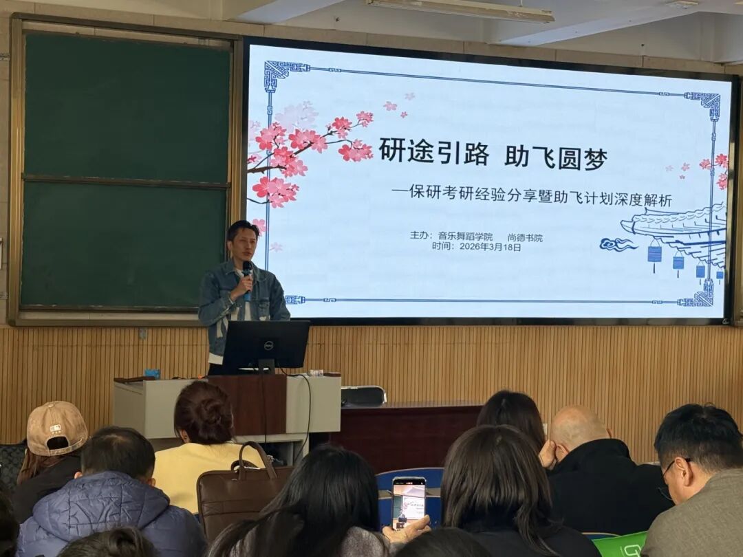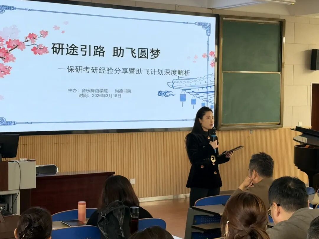 3月18日中午,音乐舞蹈学院教工党支部联合尚德书院音乐舞蹈研究生党支部在音乐舞蹈学院212教室,举办保研考研经验分享暨助飞计划深度解析会。学院领导、专业教师代表、研究生代表及全院有升学意向的学生齐聚一堂,通过榜样分享、专业指导、政策解读,为备考学子搭建交流学习平台。